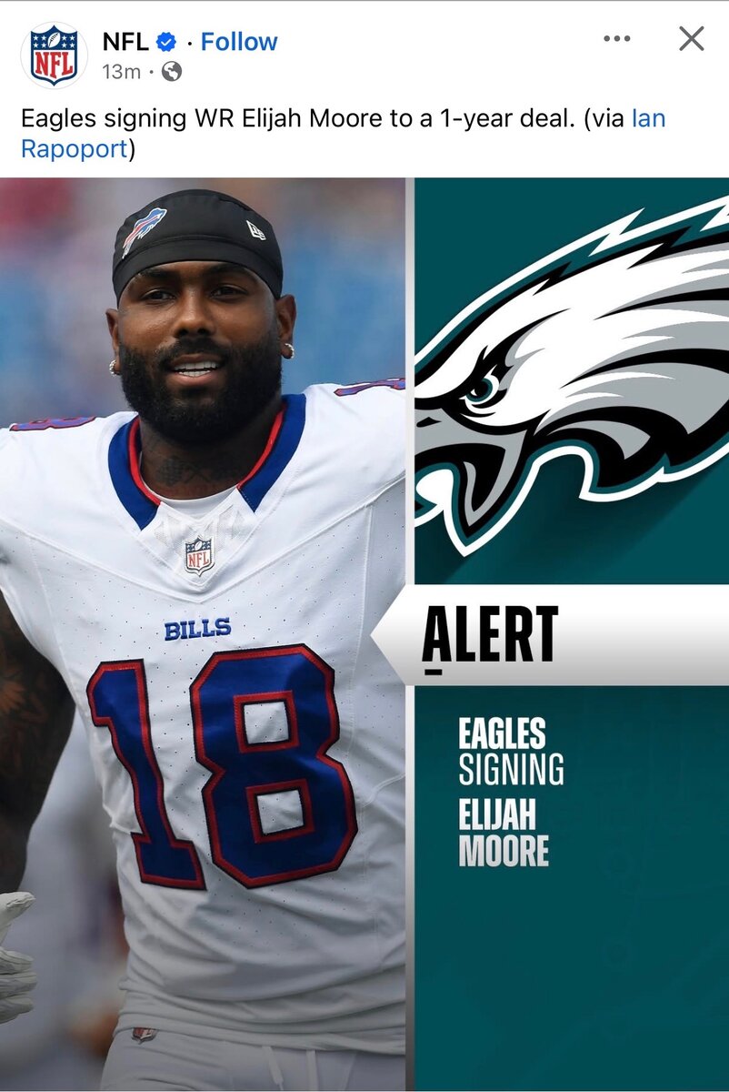 March 25Mar 25 Author 20 minutes ago, EaglesAddict said:Yep. As for Moore himself, his career has seemingly been disappointing. Good athleticism. Maybe because he's played on mainly dysfunctional teams...Jets, Browns...then Buffalo last year where they barely used him. He could quietly end up being a good role player or WR3 if we finally utilize that position.He averaged 50 catches per season in the 4 years prior to 2025 (when he split time between Buffalo and Denver).