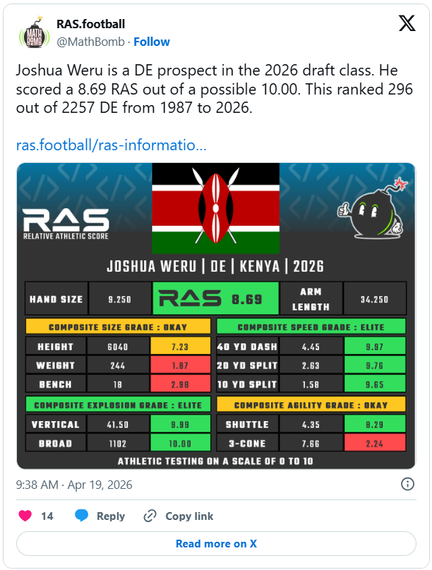 Posted 1 hour ago1 hr 2026 UDFAsPosted April 26th, 2026The Eagles have a very good roster. I thought they had a good draft. With that in mind, I didn’t expect much from the UDFA class. Agents want their guys to go places where they have a shot to stick. The Eagles surprised me with a class that has some good pieces.Here is a quick overview.You wanted a TE who could block. The Eagles got you one.They signed 3 safeties. One could move to corner, but they wanted to get guys to improve the depth for Training Camp. They got athletes who can make plays.They added another big OL.They got a LB who could make the practice squad.And yes…they did sign a long snapper.***TE Dae’Quan Wright – 6-4, 246 – Productive throughout career. Caught 113 passes. As a senior he started all 15 games (39-635-16.3, 5 TDs). Good effort blocker, both in-line and on the move. Has quiet hands. Catches the ball smoothly. Good RAC ability. Good downfield receiver. Shows a good feel for getting open. Didn’t do athletic testing at Combine or his Pro Day. Looks athletic on tape, but would be good to have numbers to compare to others. Hurt his shoulder in the season opener and played through the injury all year. That shows toughness, especially for a guy who will block. Big question for me is route-running. Ole Miss used him in space quite a bit and also got him open via play design. If Wright can prove he can consistently get open against good man coverage, he absolutely has an NFL future. I had him rated as a fourth rounder. Others had him a bit lower, but surprising he went undrafted unless there is a lingering medical issue.LB Deontae Lawson – 6-3, 226 – Alabama – 3-year starter. Team captain. Finished career with 283 tackles, 19 TFLs, 6.5 sacks. Bit of a sloppy tackler. Tends to go low on his targets, which will be an issue at the next level. Prefers to slip blocks rather than take them on. Will take on blocks at times, but tends to use his shoulder. Will need to fix that at the next level and learn to use his hands to strike. Solid athlete with good quickness and agility. Has a lean build. Would likely need to bulk up for the NFL. Quick feet. Diagnoses well and then attacks the ball. Has the athleticism to be solid in coverage. The biggest issue for him is tackling. He grabs, reaches and lunges. Needs to keep his feet and attack the midsection of his target instead of consistently going low. Will be a fatal flaw if not fixed. A good LB coach should be able to get this turned around.OL Jaeden Roberts – 6-5, 333 – Alabama – 3-year starter at RG. Injuries limited him in 2025. Big, physical blocker. If he’s able to latch on, the defender is going where Roberts wants him to. Powerful. Has some real pop when he hits guys. Heavy hands. Serious hand punch. Stuns guys. Able to engage and move DL. Can be sloppy with his hands. Knee bender. Plays with good pad level. Looks for work. Good on the move. Has good feet. Strong finisher. Put his share of guys on the ground. Big man who plays big. Has 33 3/8 inch arms and 10 inch hands. I’m shocked he didn’t get drafted in a weak OG class. Has real potential. There was reportedly a lot of competition for him, but the Eagles were able to get him signed. This is a player they really wanted.S Maximus Pulley – 5-11, 200 – Wofford – 34 career starts. Recorded 189 career tackles with 7.0 tackles for loss and 7 interceptions. Does a great job of jumping routes. Gets a really good break on the ball. Plays WR screens well. Good hands. Solid tackler. Has quick feet. Comes down quickly in run support. Didn’t play deep a lot, but showed good range when he did. Spent most of the time closer to the LOS where he could be a playmaker vs run and pass. Really good athlete and you see that on tape. Ran 4.45 at his Pro Day. Had a VJ of 41.5 inches and a SS time of 4.25. That’s an NFL athlete. The Eagles did a lot of work on him before the draft so this is another guy they had targeted.LS Rocco Underwood – 6-3, 240 – Florida – Was Dane Brugler’s #5 LS. He won the Patrick Mannelly Award, awarded to the best long snapper in the country in 2024. Was a semifinalist in 2025. Did a good job of getting downfield after the snap and getting in on the tackle. Recovered one fumble. Was Florida’s LS for four seasons so he’s got plenty of experience.S Kapena Gushiken – 5-10 – 189 – Ole Miss – Had a great Pro Day. Ran 4.35 , 41″ vertical, 11′ broad, 6.77 3-cone and 4.11 shuttle. 3-year starter. The first two were at WSU. Ended WSU career with 88 total tackles (52 solo), 5.0 TFL, 1.0 sacks, three interceptions, 11 pass breakups and one fumble recovery. Trf to Ole Miss and had 55 tackles, 1 INT and 5 PDs as a senior. Good when he’s in the slot. Has good man cover skills. Okay tackler. Good effort, but doesn’t get guys down quickly and cleanly. Shows good awareness. Fluid hips. I wonder if the Eagles would consider him at corner with that kind of athleticism and speed. Had an amazing pick-six back in 2023.S Tucker Large – 5-10 , 181 – Washington State – Started for 3 years, the first two were at South Dakota State. Became a team captain in his only year at WSU. Had 71 tackles with 3 TFLs and 8 PDs as a senior. Had 7 INTs at SDSU, but none at WSU. We don’t have any testing numbers for him. Has punt return experience. Smart, instinctive player. Made big plays on defense and STs. Can line up in the slot and play man coverage. Also comfortable playing deep and reading the QB. Has good ball skills. Undersized and had some injury issues at WSU. You wonder if he can handle the NFL.LB Joshua Weru – 6-4, 244 – IPP – Another guy with great athleticism. Just has to learn how to play football. Eagles will have a roster exemption for him. Learning to play LB will be tough. Have to defend the run and pass. Lots to learn. The best LBs are smart and instinctive. Weru is a blank slate. Will be interesting to see if they have him focus on the edge or off-ball LB