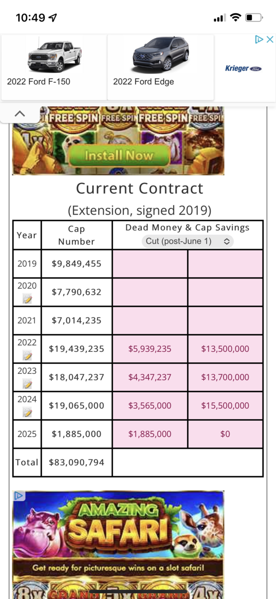 January 19, 20223 yr 28 minutes ago, MillerTime said: Anything after 2023 accelerates. So you are correct with this sir. But that saves more money in 2024 and 2025 Yep, so savings in 2024 would be the full $19m. At least that's how I understand the cap works but I'm no expert
