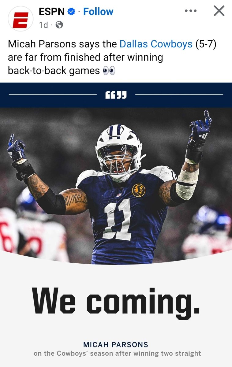 November 11, 20241 yr https://www.instagram.com/p/DCPC5hVKWn_/?igsh=MXdudGVvMmN3OXFoOQ== Parsons with a dig at the coach