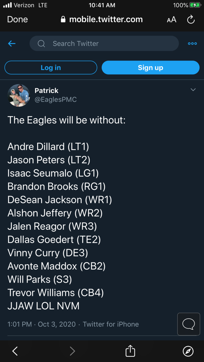 October 4, 20205 yr Author 1 hour ago, birdgang said: who's playing WR today besides ward and hightower? I imagine Burnett will get quite a few snaps. Fulgham will probably get some and maybe Killins (wasn’t it reported they give him snaps at WR during TC?). Maybe they even bring Green up from the PS for this game.