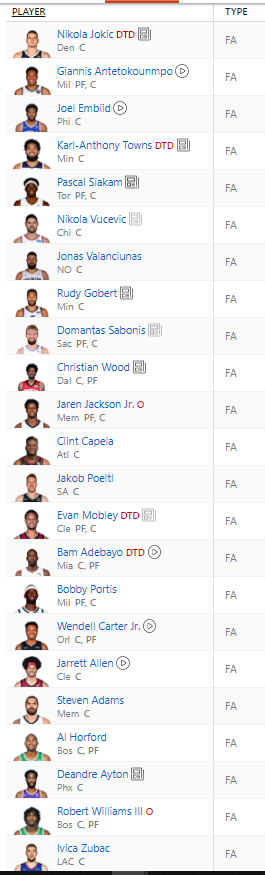 October 7, 20223 yr I am looking in the ESPN site now - they have gotten about 10x as liberal as who they assign a "C" designation to versus 5 years ago, so I guess having a starting C spot will actually be just fine