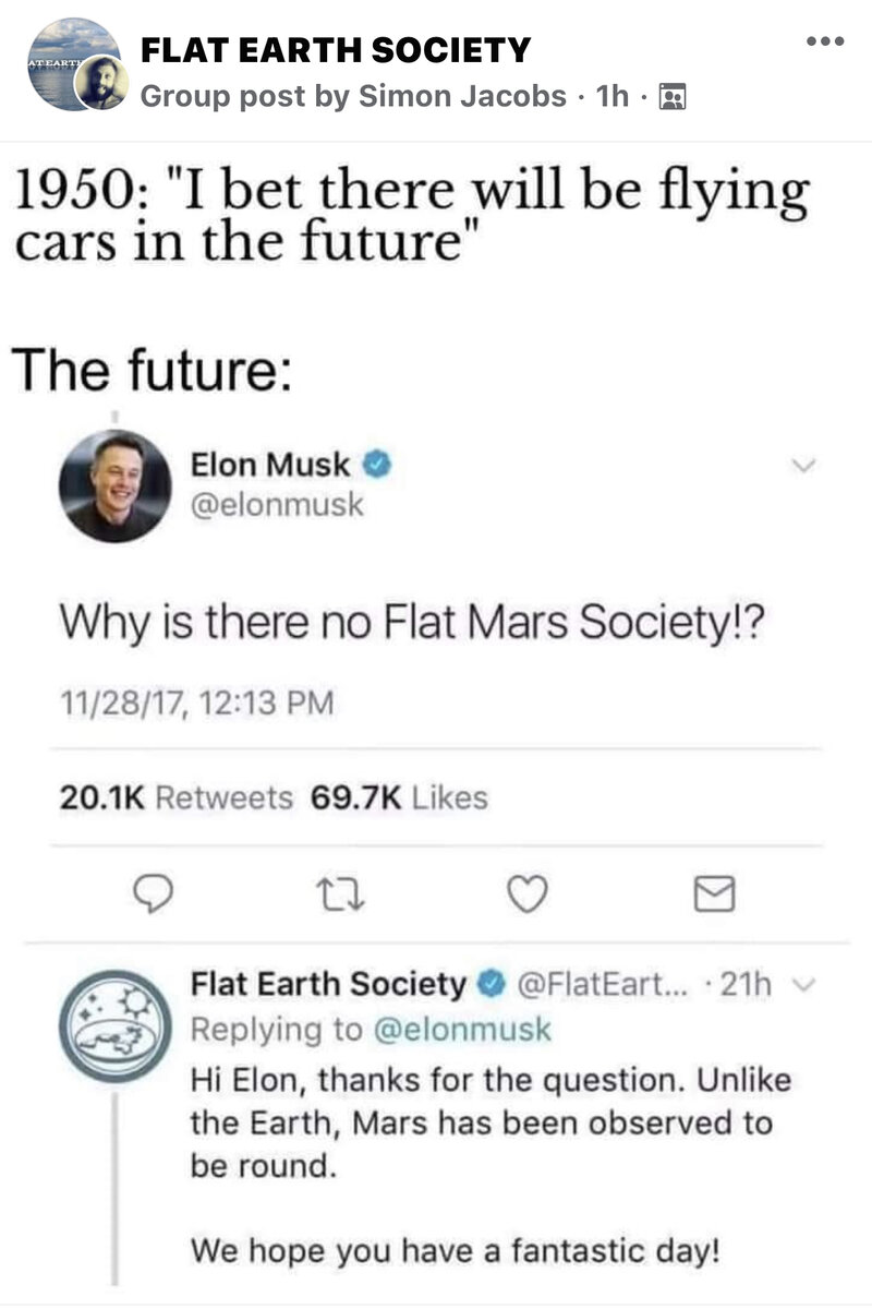 April 20, 20214 yr 3 minutes ago, jsdarkstar said: So the Earth is Flat but the Moon and the Sun are round? Explain that? And so is the Sun. The earth is flat AND round. Just not spherical. It just happens you are looking at the top of the sun and bottom of the moon. Do your research!