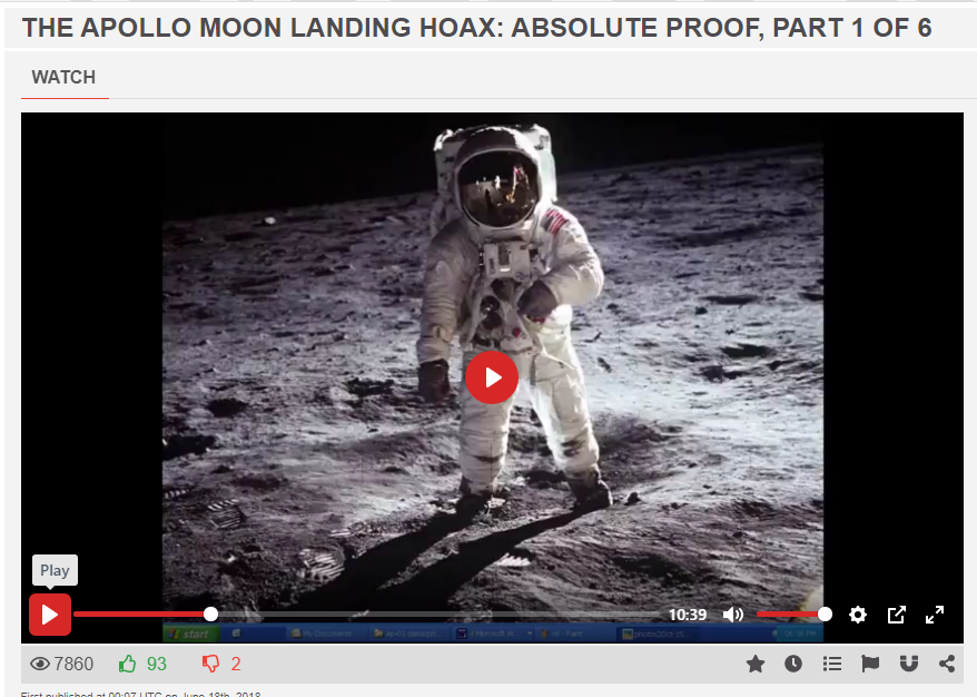 May 19, 20214 yr Oh, boy. Ted Aranda. THE APOLLO MOON LANDING HOAX: ABSOLUTE PROOF, PART 1 OF 6 Can't find anything about this guy on the Internet. But his video says he's an Advanced Amateur Astronomer. Yeah he's qualified. In the first 5 minutes, he mentions mass shooting hoaxes. I stopped the video after that. Tell the parents of Sandy Hook that there children aren't really dead. People Like Alex Jones furthers that conspiracy and he was ruined financially because of it. That's a red line for me. Eagle VA I'll tell you why they haven't done it, because they can't, they've never been to the Moon.....EVER!!'