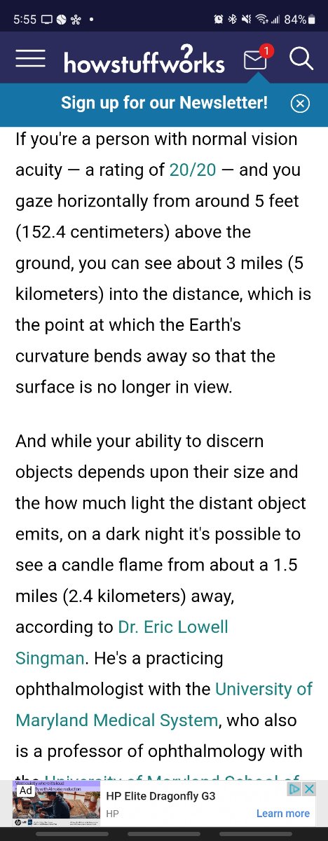 April 18, 20232 yr The reason you can't see a candle at night from 1.5 miles is because there are usually trees or buildings in the way. Everyone knows that. Next!!