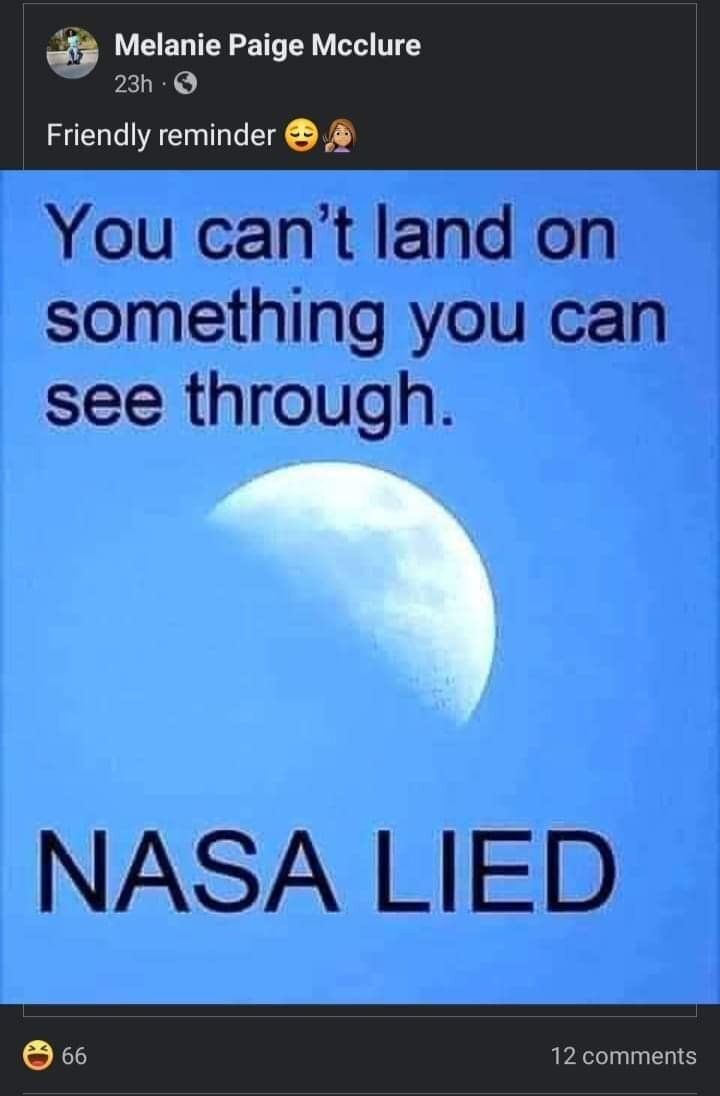 December 28, 20231 yr So weird how all the neighboring celestial objects, like the moon and planets, are all roughly spherical, and no one has ever see a flat planet or sun.