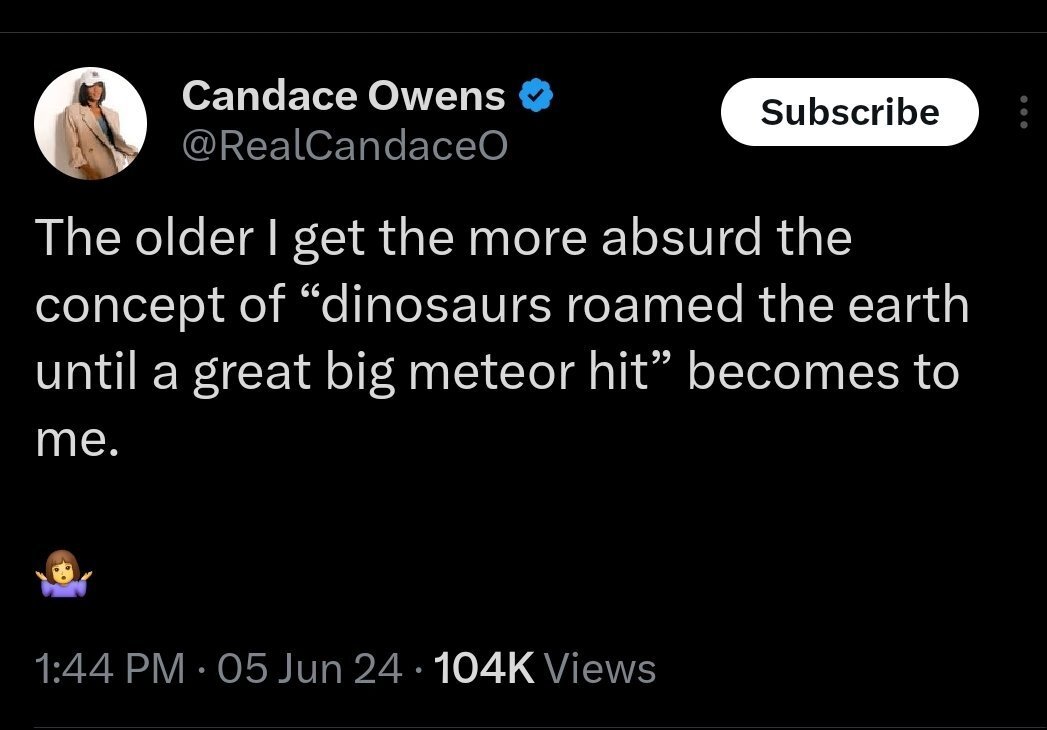 June 5, 20241 yr 11 minutes ago, Alpha_TATEr said: i mean seriously, it's like he's a caveman and doesn't understand simple **** sapien knowledge. I’m largely convinced he’s the type to be a contrarian just to be a contrarian. Even in his 911 conspiracy beliefs, he doesn’t argue the towers fell to the popular CD theory, he argues they were brought down by a directed energy weapon.