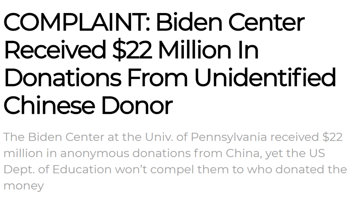 October 29, 20204 yr Even more money! $22M from communist China for Biden center at UPenn!!! https://nationalfile.com/complaint-biden-center-received-22-million-in-donations-from-unidentified-chinese-donor/