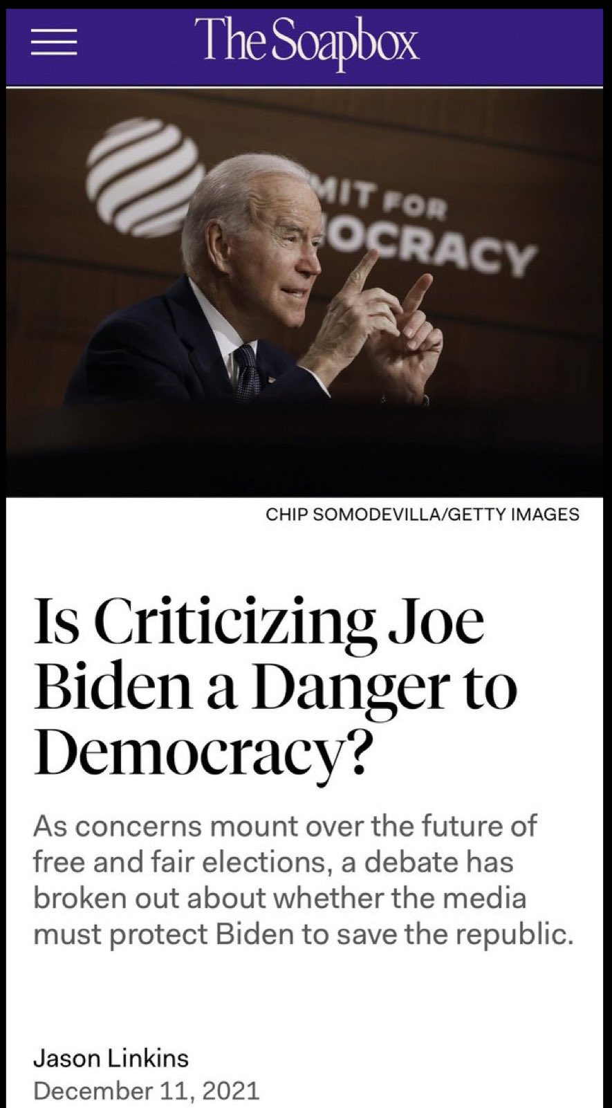 December 13, 20213 yr 52 minutes ago, Procus said: My guess is that many if not most on this thread agree with this. Joe deserves the same amount of criticism any president gets. The above article is stupid. What's worth pointing out though is that we're told repeatedly that the MSM is in the tank for Joe. Are you suggesting that the far left liberal mainstream media is being critical of Biden enough to warrant writing such an article?
