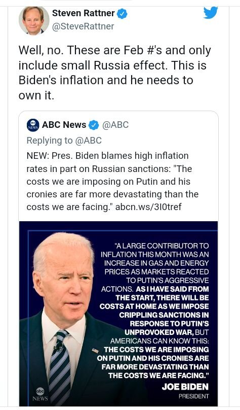 March 11, 20223 yr 11 minutes ago, toolg said: Both are true. Biden must acknowledge inflation domestically if he is going to do anything about it. But the sanctions have had far worse effects in Russia. In America, we all have to suck it up to pay more for stuff in a booming economy. In Russia, businesses and banks are closing. Their economy is collapsing. Booming economy? We’re on the brink of a recession due to more than likely stagflation.