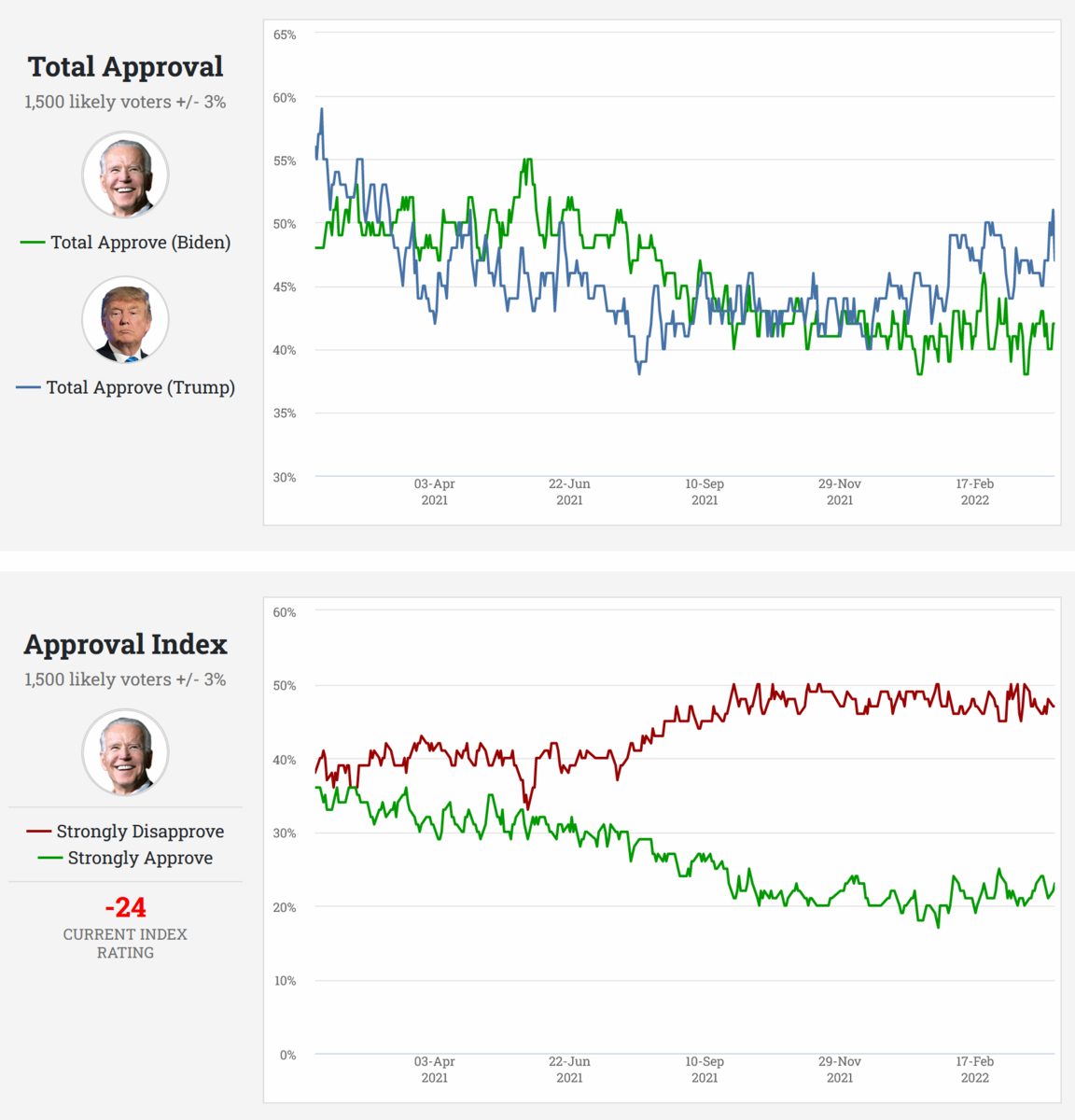 April 5, 20223 yr 26 minutes ago, Procus said: https://www.rasmussenreports.com/public_content/politics/biden_administration/prez_track_apr05 Daily Presidential Tracking Poll Tuesday, April 05, 2022