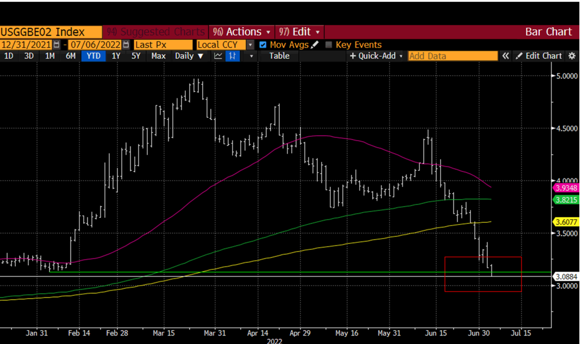July 7, 20223 yr 11 minutes ago, JohnSnowsHair said: Nobody is taking grammar lessons from you, imbecile. Anyway. Gas prices are going down. Weird since there wasn't a bunch of oil drilling or deregulation, which idiots here seem to think are the only variables in the equation. I'm actually curious why they're going down. Demand destruction may be some of it, but late June/July are big months for demand at the pump as people go on the road for the summer. Personally I think prices just overshot demand.. in the near term aftermath of Russia's invasion and subsequent sanctions, there was a lot of scrambling so prices got a bit out of control. Now they're finding the equilibrium. If true, it probably means a sustained price drop isn't in the cards. The US still needs a few high volume refineries. There's a crapload of desert that could be put to use. Hell throw up some nuclear plants next to refineries in some remote areas and demonstrate what a bridge to a post fossil fuel world looks like. Crude oil prices have dropped very quickly over the last few weeks: At the same time, refining margins (crack spreads) have also dropped: So it's a double whammy of input prices (crude) dropping at the same time that the profit margins are coming in. The reason for both is mainly just market flows and liquidity. A ton of investors, mainly HFs, piled into energy names in Q2, and that is exacerbating the move down as everyone scrambles to get out. The energy related companies are still making record profits, but a bunch of the speculative premium has come out. That's happening because of (i) a MASSIVE reduction in inflation expectations, (ii) anticipated demand destruction due to the Fed raising rates and (iii) her behavior by hedge funds. Check out this graph of 2 year inflation expectations...per usual the talking points of politicians are stale: