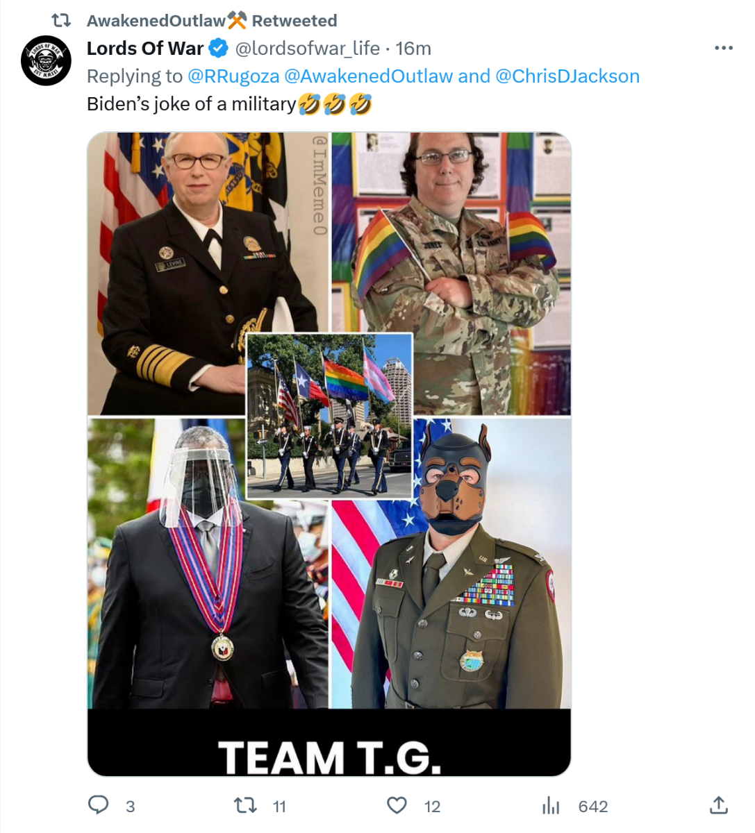 August 13, 20232 yr 6 hours ago, Procus said: Oh honey, I love our military - it's why I made the post. I abhor what this administration has done to our military. I'd say one can't possibly be this ignorant, but here we are.
