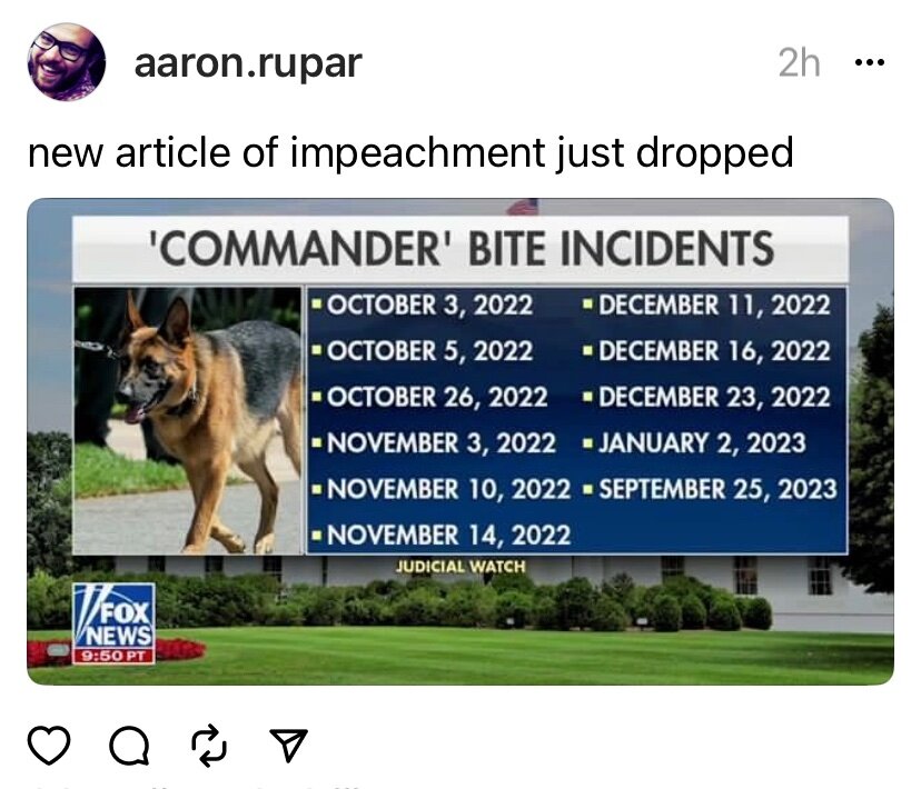 September 27, 20232 yr 38 minutes ago, mikemack8 said: Biden's dog bit another agent. Pathetic loser can't even train a dog properly. To be fair, that would be a big ask for someone who's unable to form a complete sentence at this point. Pfft, he cant be focused on inconsequential things like dog training at a time like this, he has an election to rig!