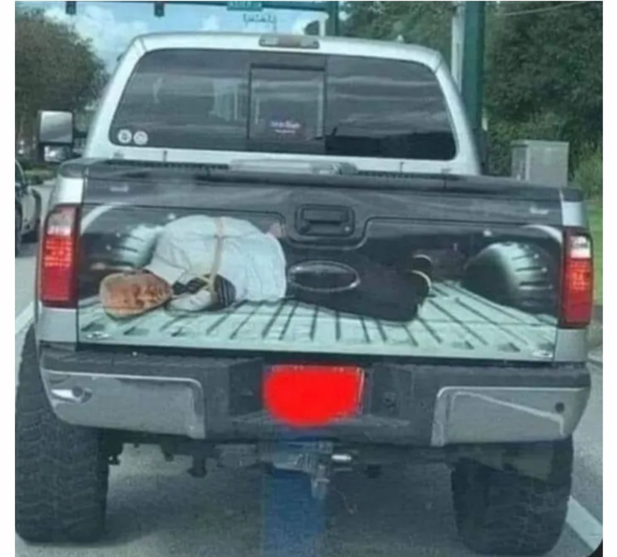 March 30, 20241 yr 6 hours ago, Tweek said: Maybe he should tweet out videos depticting his rival being kidnapped and hog tied in back of truck...spare us your pearl clutching nonsense.. https://www.mediaite.com/trump/trump-shares-image-of-biden-tied-up-in-the-back-of-maga-pickup-truck/ Donald Trump posted a video to his Truth Social account showing a pickup truck whose tailgate featured a photoshopped image of a tied-up President Joe Biden being hauled away. The truck in question can be seen driving in what looks like a caravan of Trump-themed trucks. Trump inciting violence engaging in criminal conduct. Typical behavior for the criminal defendant. I hope the SS pays a visit to the truck driver.