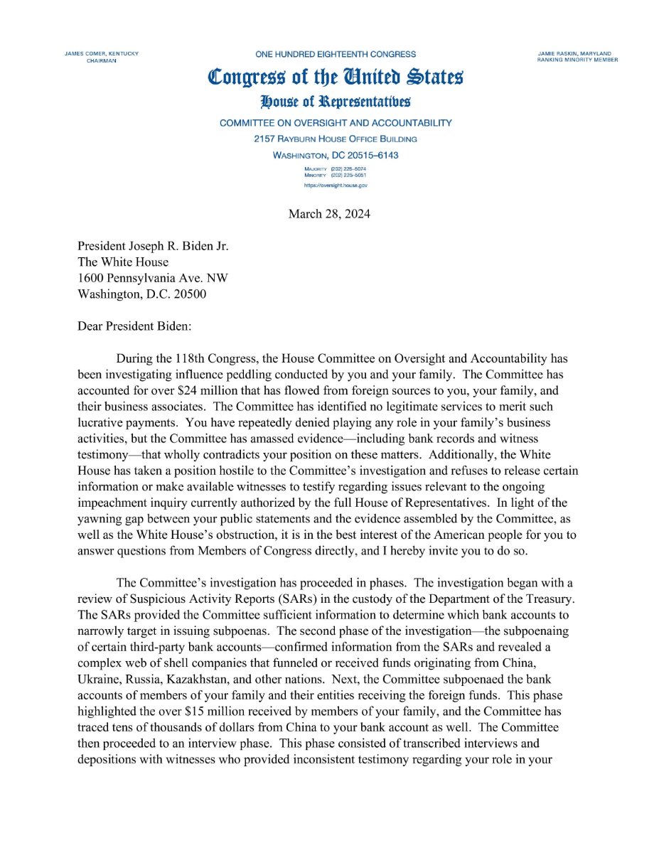 March 26, 20241 yr Representative James Comer has finally given up on trying to impeach Joe Biden—but he’s trying to make it seem like that was his plan all along. After more than a year of insisting that the president and his family are guilty of corruption, Republicans have yet to produce any evidence of Biden’s wrongdoing. Many GOP lawmakers are starting to back away from the impeachment effort, admitting that they likely don’t have the votes to pass articles of impeachment. https://newrepublic.com/post/180126/james-comer-admits-defeat-biden-impeachment