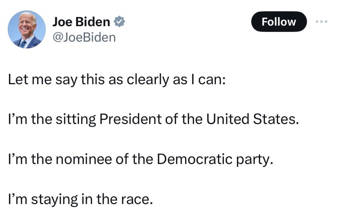 July 22, 20241 yr I was surprised by how many of my friends were freaking out yesterday (my wife too). He was going to lose. It was going to be a landslide. It's why he dropped out.