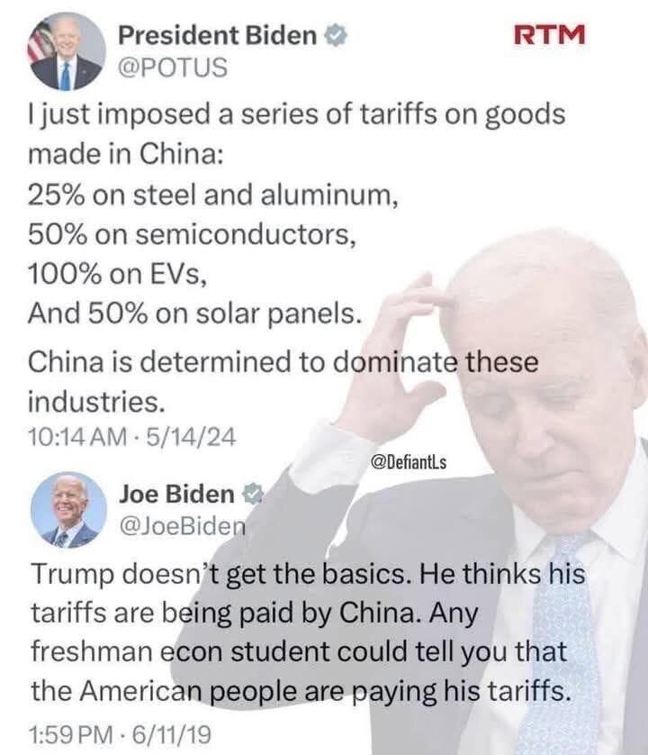May 23May 23 Any freshman Econ student can tell you tariffs make the foreign products less competitive and favor American made products. That’s the point