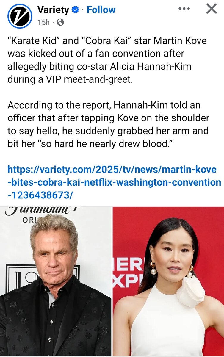 June 26, 2025Jun 26 2 hours ago, NOTW said:No, it has to be at the Cobra Kai Sekai Taikai!With this dude shouting Sekai Taikai into the mic every 5 minutes.Oh yeah where they change the rules every match….the fighter who causes their opponent to bleed out from a bite to the jugular wins. Then terry silver shows up with vice grips and tries to pry out kreeses canines 😆