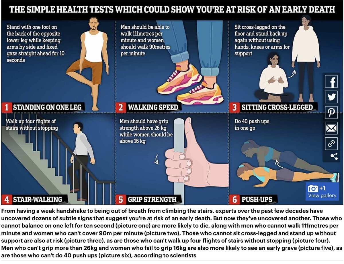 June 23, 20223 yr For us older posters. https://www.dailymail.co.uk/health/article-10941157/All-subtle-signs-youre-risk-early-death-according-science.html