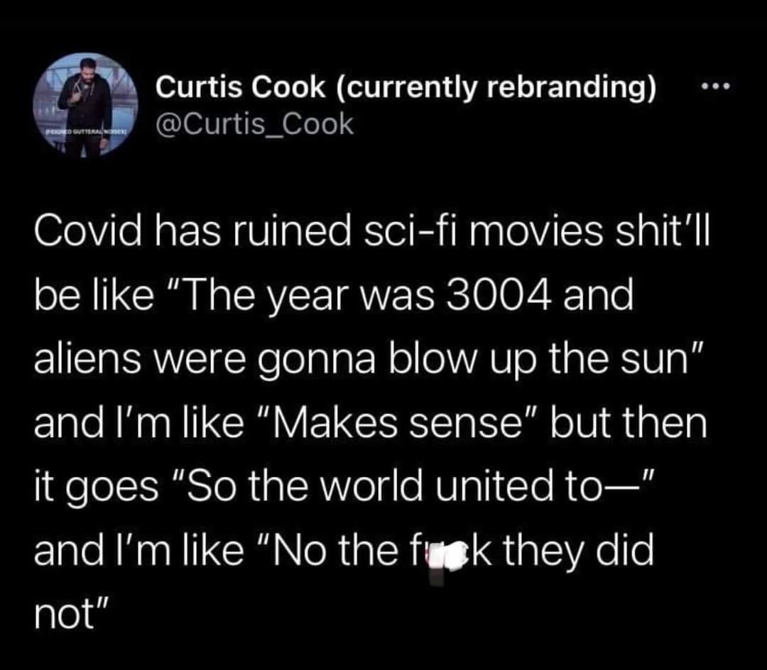 January 25, 20242 yr 10 minutes ago, Boogyman said: Around summer of 2021, my co-worker said, "Who'd have figured that the most unrealistic part about Contagion was when they were crawling over each other to get the vaccine."