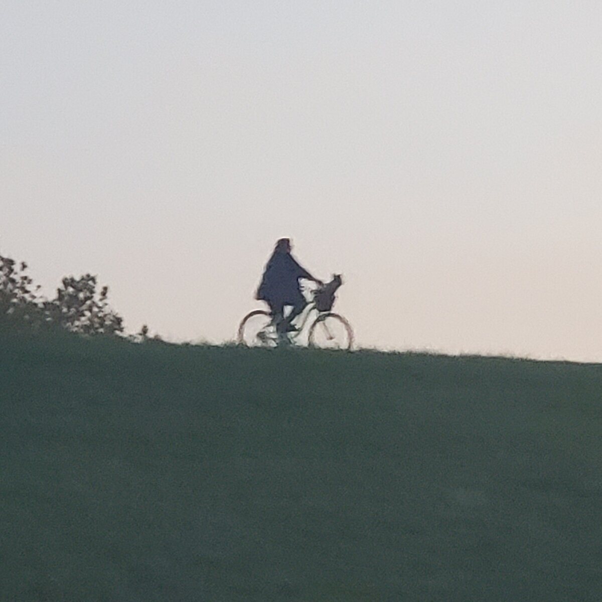 October 18, 20205 yr I took this while picking my kid up from soccer. bro-ad with a small dog in the basket riding on the bike path....lookin' like E.T.