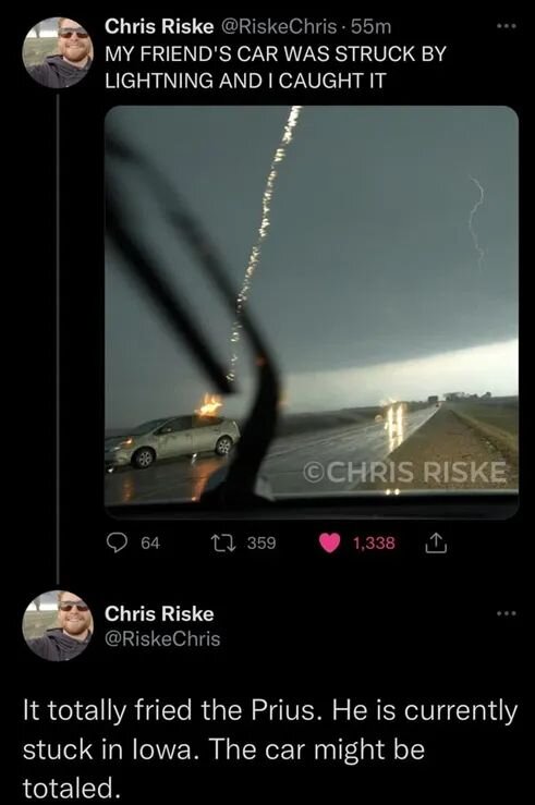 April 16, 20223 yr 2 hours ago, Boogyman said: Happened to me in our old sprinter service van on 422 years ago. Mechanic didn't believe we got struck by lightning until he saw that every computer chip was fried. It was wild though, loudest thunder I ever heard and a bright blue/green flash instantaneously