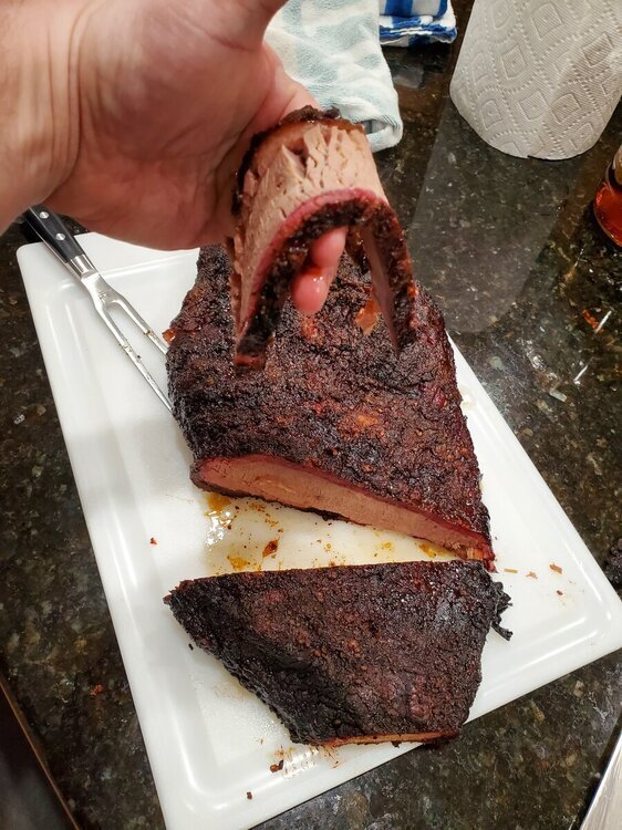 August 24, 20232 yr 225 seems high, even without wrapping. I usually set my smoker to 205 until the point stalls, then wrap both until internal temp on the flat hits 203. That's a real nice ring though.