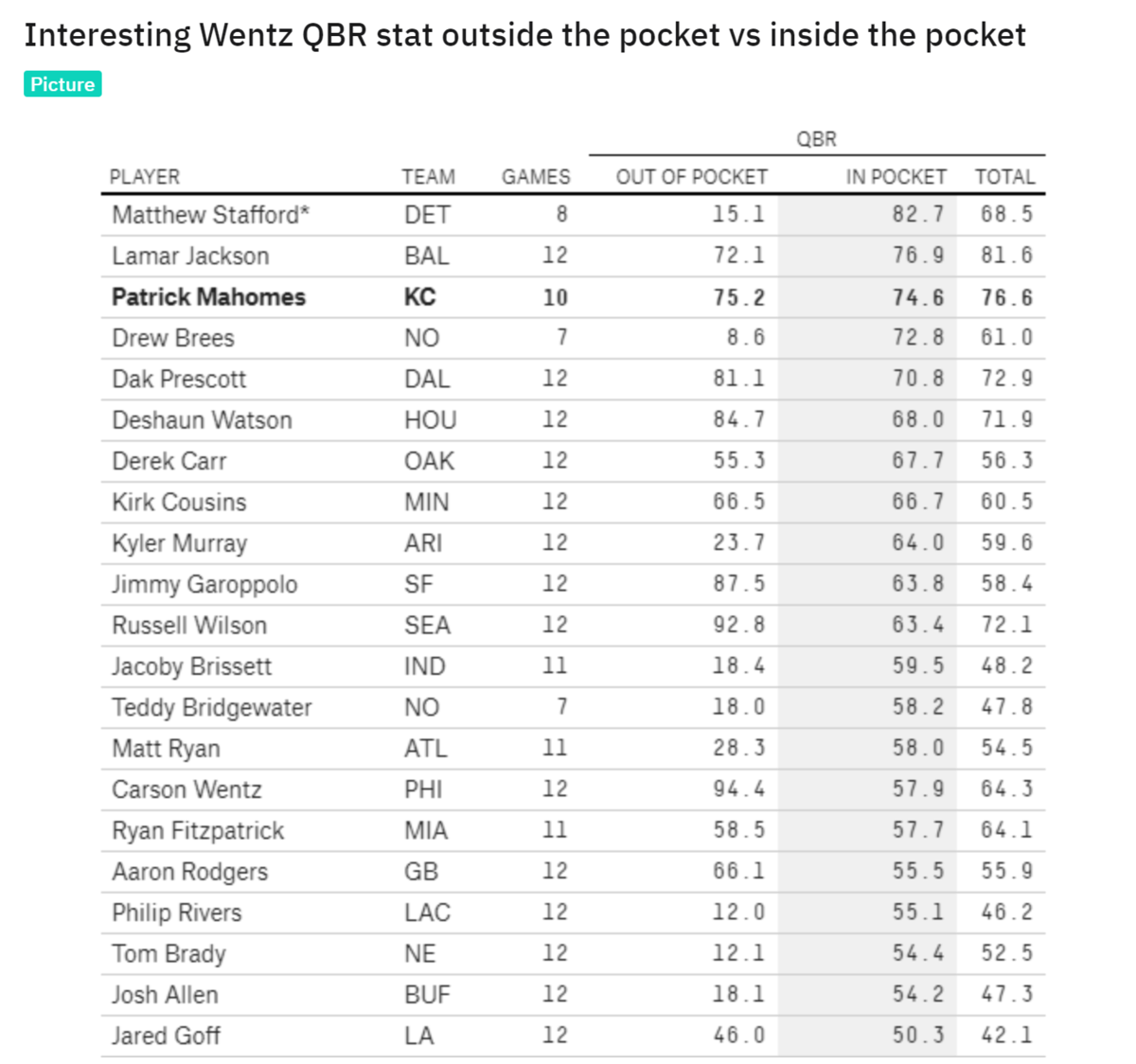 December 15, 20204 yr 1 minute ago, downundermike said: You posted the stats, not me. Clearly shows Wentz has a 10 point better QBR overall, and 2 1/2 points better from the pocket. Why can't you acknowledge that he made tons of throws from the pocket in 2017. Better yet, post that same chart from 2017, or provide me a link. I will assume your incoming deflection is evidence enough you do not want to post info that proves me correct. I posted the video though, everyone can watch it, HE MAKES TONS OF THROWS FROM THE POCKET. No, he doesn't make enough throws from the pocket. A highlight reel doesn't change that simple fact. He's too mentally slow to process the field, find the open receiver, and deliver an accurate pass like the great pocket passers. He's good when his athleticism allows him to scramble and freelance on broken plays. Now when that's gone, he's the worst QB in the league.