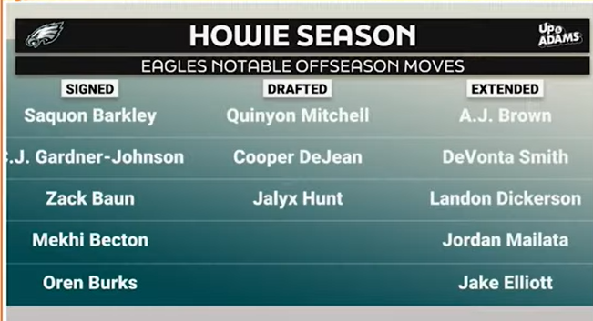 February 27, 2025Feb 27 Howie's interview at the combine. Notes that moves he's made in the past were from a place of disappointment (like trading Bradford after drafting Wentz) Admits that his weakness is drafting inside Linebacker Reaction to Fangio saying the 2nd half was unacceptable to the defense: Jalyx is a rookie, may have exaggerated. Fangio was excited and celebrated the good things too, and that he was kind of joking about it. He also said Hunt is the one who called him "Big Pimpin" so take that for what it's worth. We're not gonna be able to keep all the free agents, need to play younger draft picks.