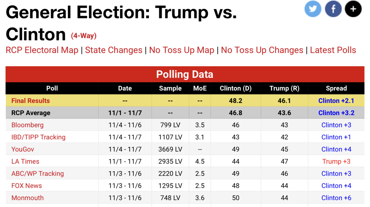 June 15, 20205 yr 4 hours ago, Jsvand12 said: Not sure if you are being serious or not but the national polls were pretty spot on in 2016. Most state polls were within the MOE as well. I don't know what polls you were looking at, but most had him losing by a decent bit. The media isn't even pretending to be balanced anymore and have a clear agenda. People can believe whatever they want, but their reporting is biased and meant to sway people and their polls are another one of their tools. Also, just like in 2016 there are a ton of closet supporters behind him. People know how unhinged liberals are and won't flat out say they like him, but when they get into the booth they can do what they want. We'll see. If this goes past election day and they are still counting mail in ballots he will probably lose cause they'll print them until he does. If it's called on election night he probably wins.