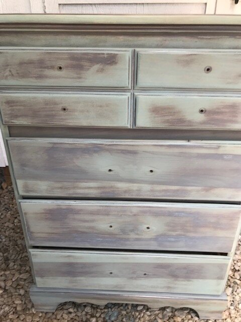 June 2, 20223 yr Here’s the headboard I did out of the mushroom house door. This week I started sanding a dresser. It’s getting vintage blue minwax and new hardware. Drawers are next. I’m making a mess.