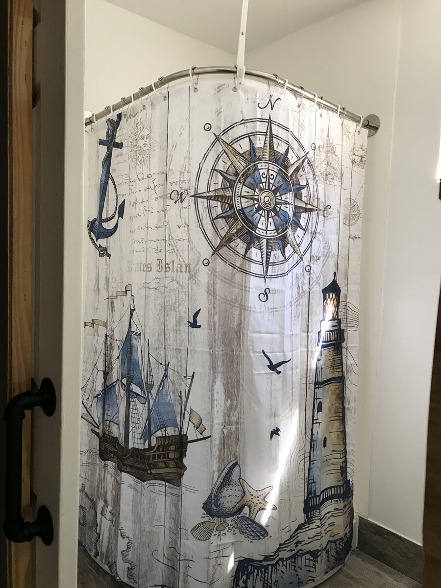 August 15, 20223 yr Son and I were back down the cottage yesterday. I'm tired of fooling around with the shower doors the owner gave us. It was not a kit and we fiddled around with it for over an hour and I just said look-give me the drill. I had purchased a shower rod and curtain. As luck would have it I apparently cannot succeed at this task either. The flange things are not flush and tight, and when you put the rod on it sags in the middle. Now I have to buy a ceiling support. Also, the shower head isn't right cause when you turn the water on it is overshooting the pan and it's down as far as it goes. Now what can I do about that? I took my frustration out with cleanser and cleaned it. Pluses were my son is a weed whacking fool, he did both the cottage and around my house when we got back. He built a bed frame yesterday. Finally, the scaffolding is back out and he did the gray stain. Next time I'm down I can get up there and do some caulking of seams.