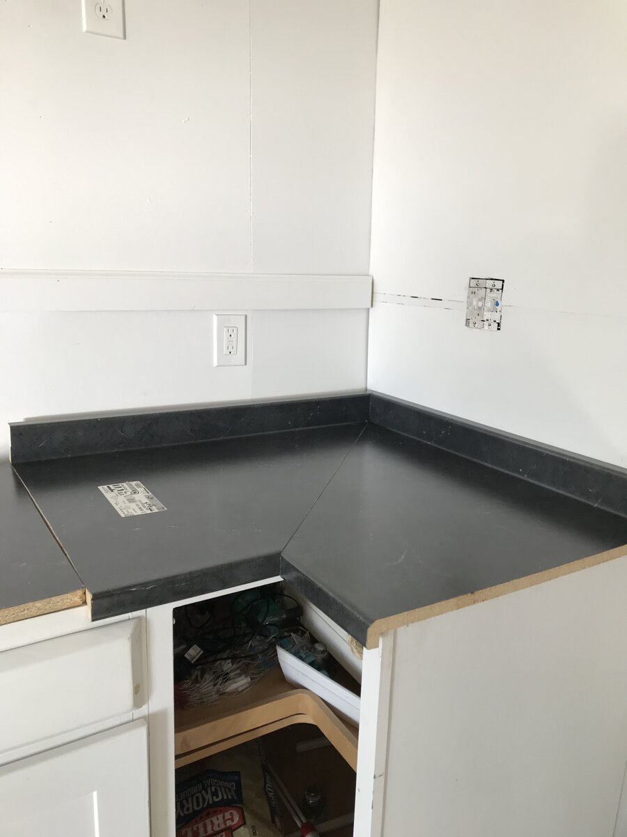 October 9, 20223 yr I’m always second guessing myself that we decided to finish what mr Di started on a low budget since we won’t own it. It’s been pure blood sweat and tears. Have to try and get ceiling and walls up in the back room (bedroom) and winterize the place. Son cut the corner counter and baseboard today.