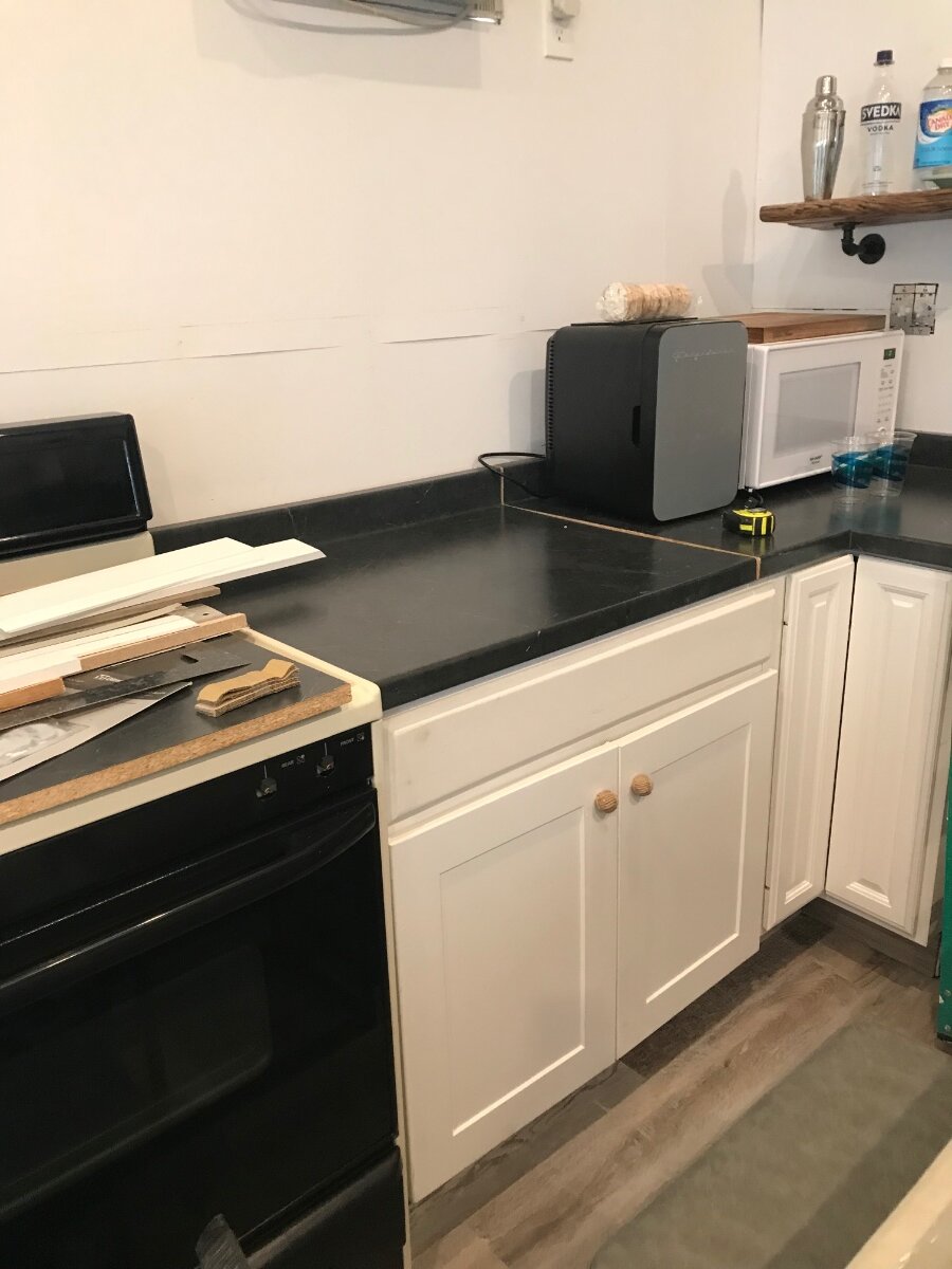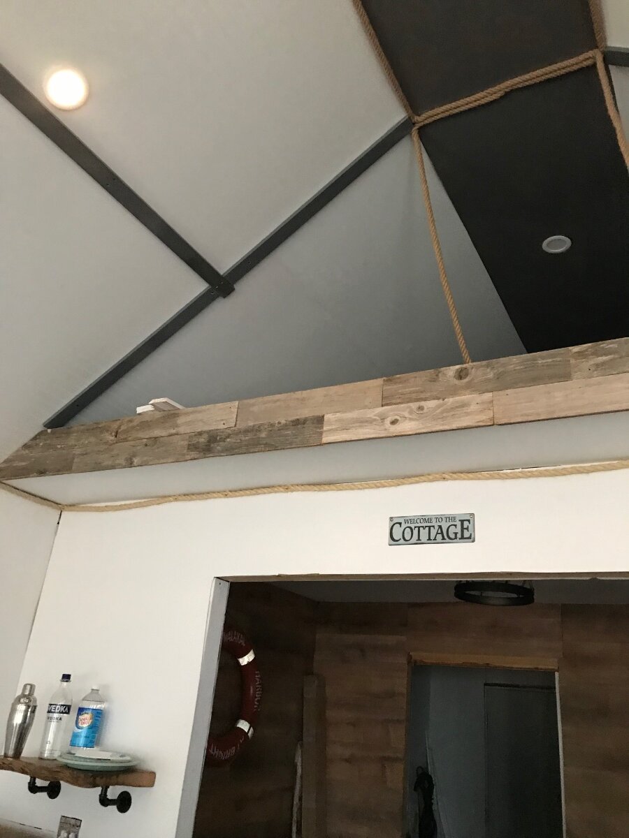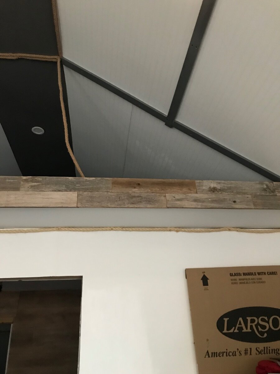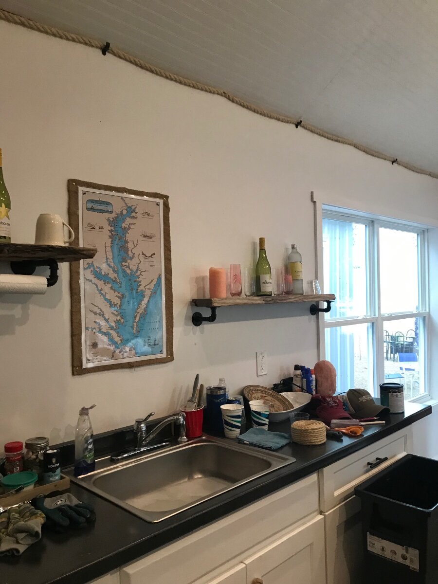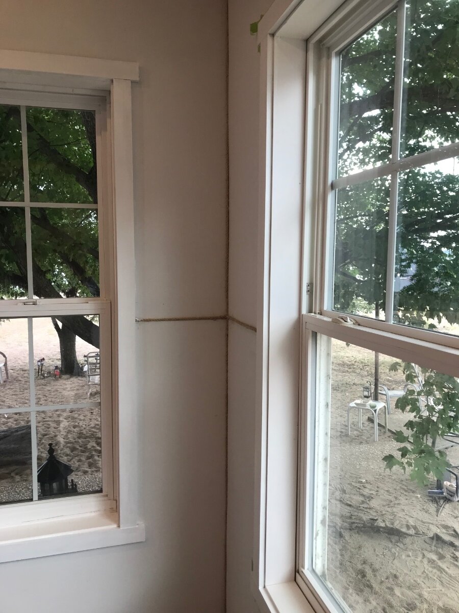 September 10, 20232 yr Season is winding down at the cottage. We have to Oct 15. The 3 windows got trim. I’m painting them. Needs a 2nd coat next weekend. Have a refrigerator and a stove in. Gas for stove will happen next year. I may ask if she has a smaller one, the thing is taking up valuable floor space. Counter was cut. 2 seams to do. Since I am no good with power tools and wood I thought I would try to do some trim with rope and glue. If it’s still up next week I’ll keep going to cover more seams.