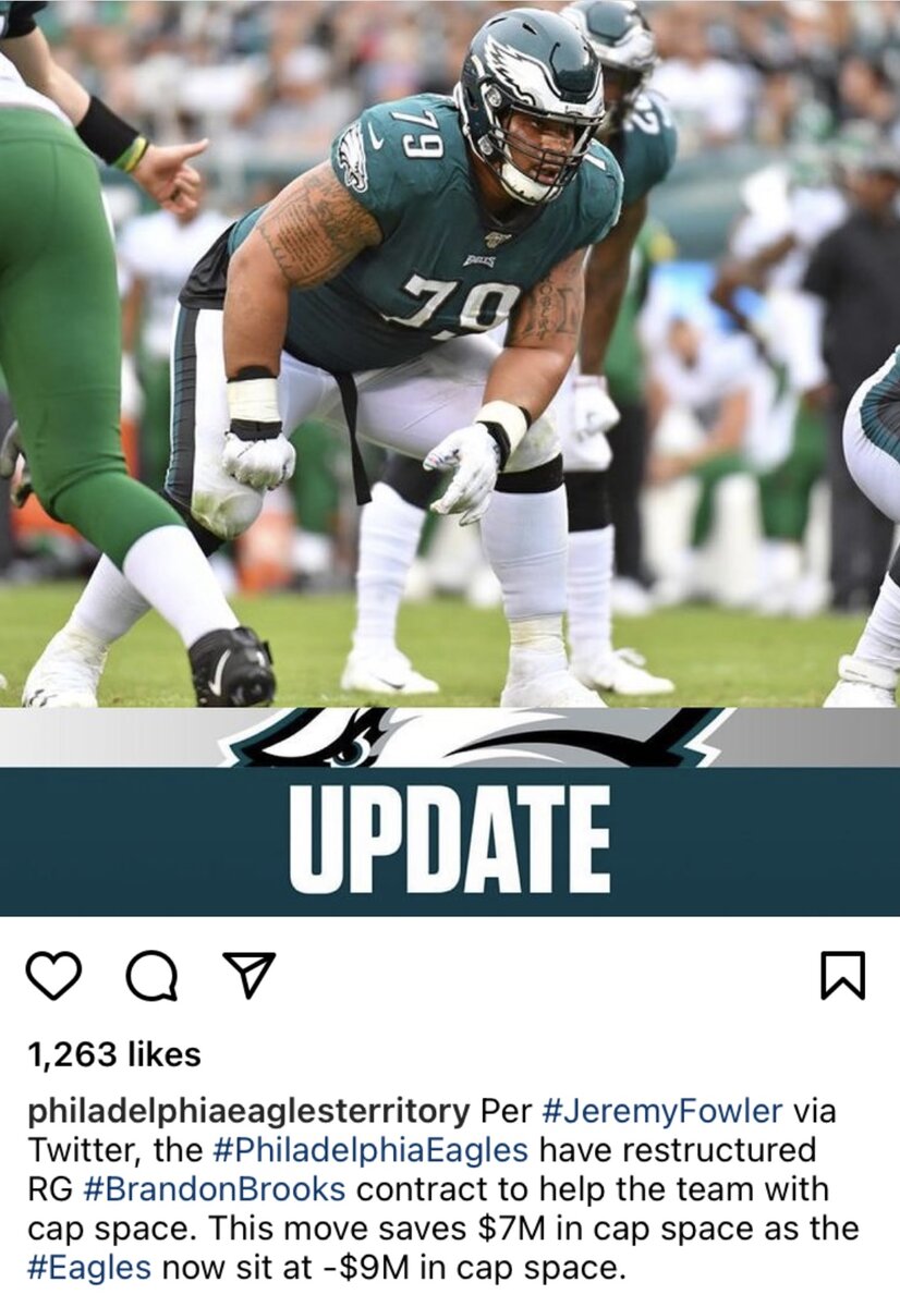 March 13, 20214 yr Author Brooks the latest to have his contract restructured to free up cap space. https://www.nbcsports.com/philadelphia/eagles/more-cap-savings-eagles-restructure-another-veteran
