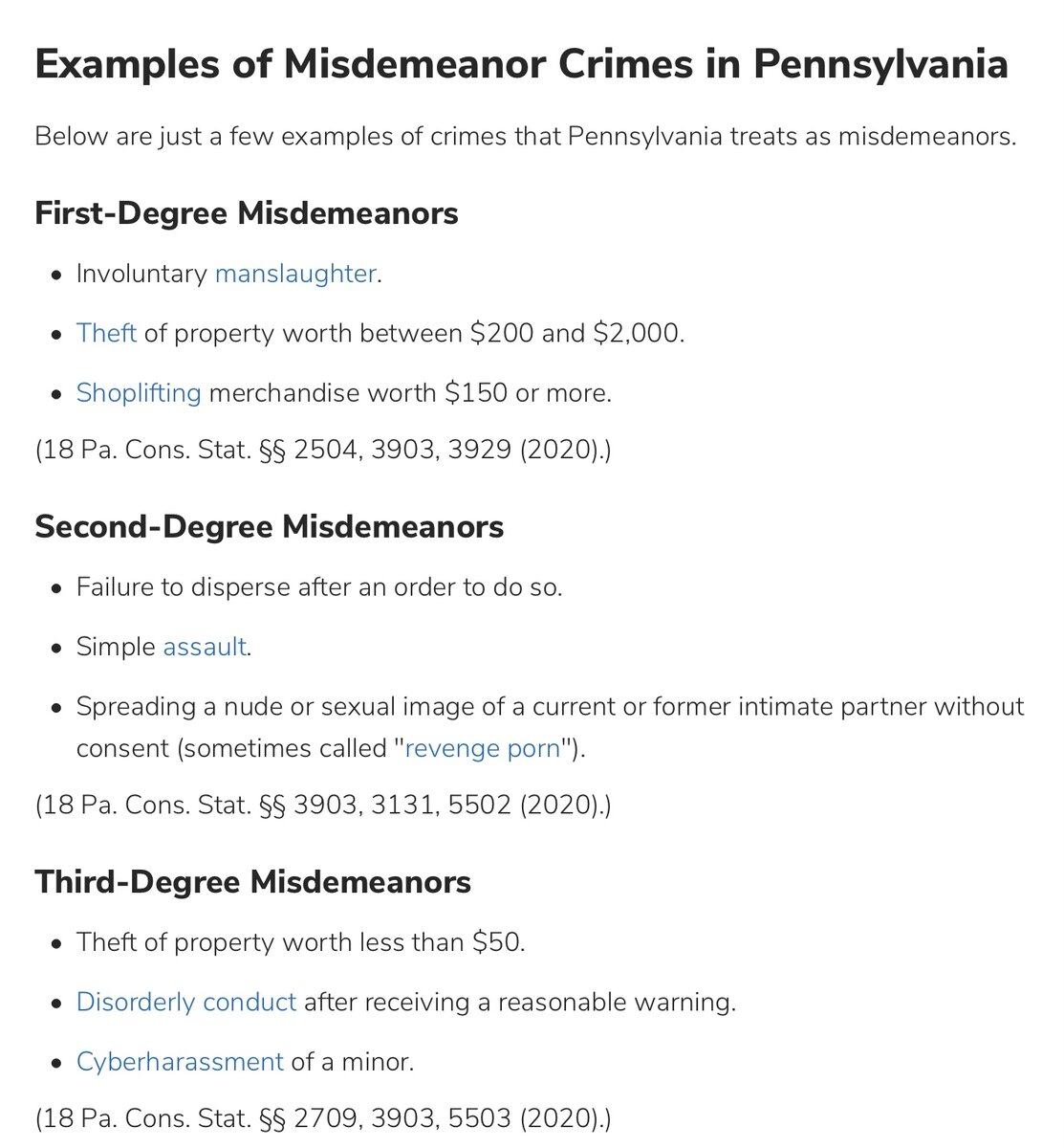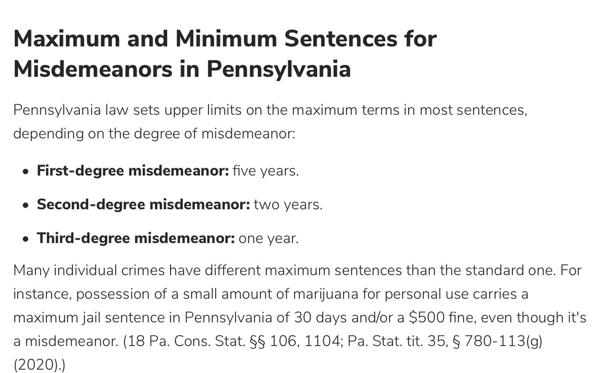 July 17, 20223 yr On 7/12/2022 at 6:55 AM, JohnSnowsHair said: She really doesn't think misdemeanors can mean jail time? Not sure what degree misdemeanor her’s was, but here Pennsylvania’s guidelines.