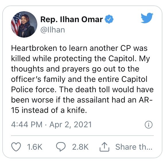 April 2, 20214 yr 20 minutes ago, Talkingbirds said: Correct he didn’t have a AR-15. Tone deaf ? It's not tone deaf. She's not wrong. Although she does take focus away from the fact that the primary murder weapon was his car. But yes, he then exited the car and proceeded to stab an officer (who was rushed to GW, and survived).