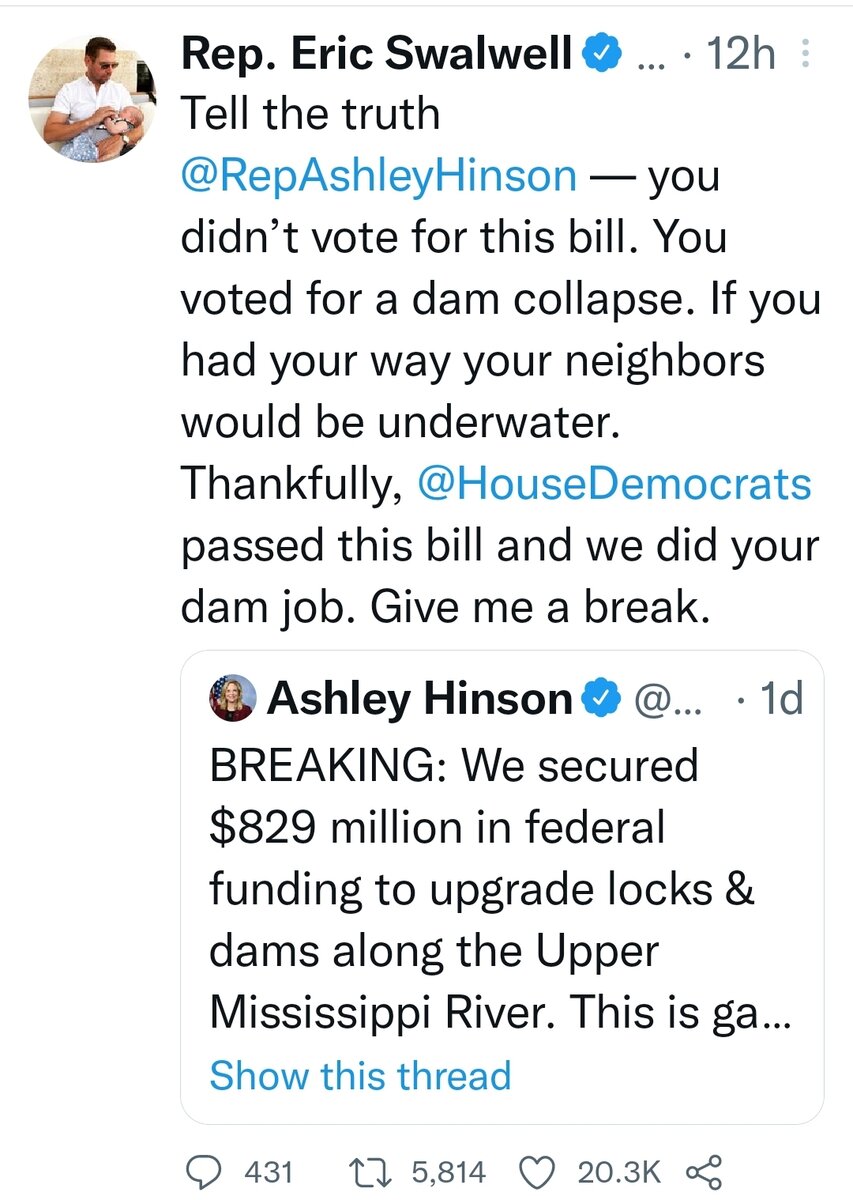 January 20, 20223 yr 2 hours ago, toolg said: Another Republican takes credit for Infrastructure after voting Nay. https://clerk.house.gov/Votes/2021369