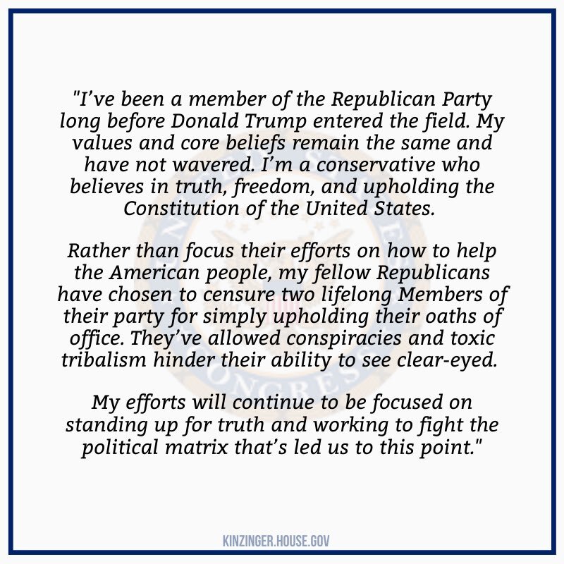 February 4, 20223 yr 6 hours ago, Boogyman said: https://www.independent.co.uk/news/world/americas/trump-news-today-january-6-latest-b2006531.html The Republican Party is today considering a motion to censure Trump critics Liz Cheney and Adam Kinzinger over their criticisms of former president Donald Trump and their membership of the committee investigating the 6 January attack on the US Capitol. I'm sure all of the republican free speech warriors and those who stand up to cancel culture will denounce this any minute now.... any minute now...