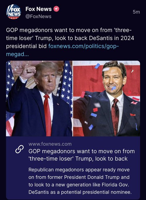 November 16, 20223 yr 1 hour ago, Toastrel said: Trump’s war chest is already large. All the big GOP donors will have to organize behind DeSantis. Hopefully an incarceration makes this a moot point. 37 minutes ago, Paul852 said: Trump Jr. getting 9% is horrifying. A-Fing-greed. And to have him and Ivanka beat Governor Kemp and Senator Cotton is terrifying. 31 minutes ago, paco said: Welp, this is why I switched my party affiliation from independent to Republican. So now the question is, in the primaries, do I vote for who I think is the best candidate or do I vote for who has the best chance to win the nomination over Trump. Hopefully they’re one and the same.