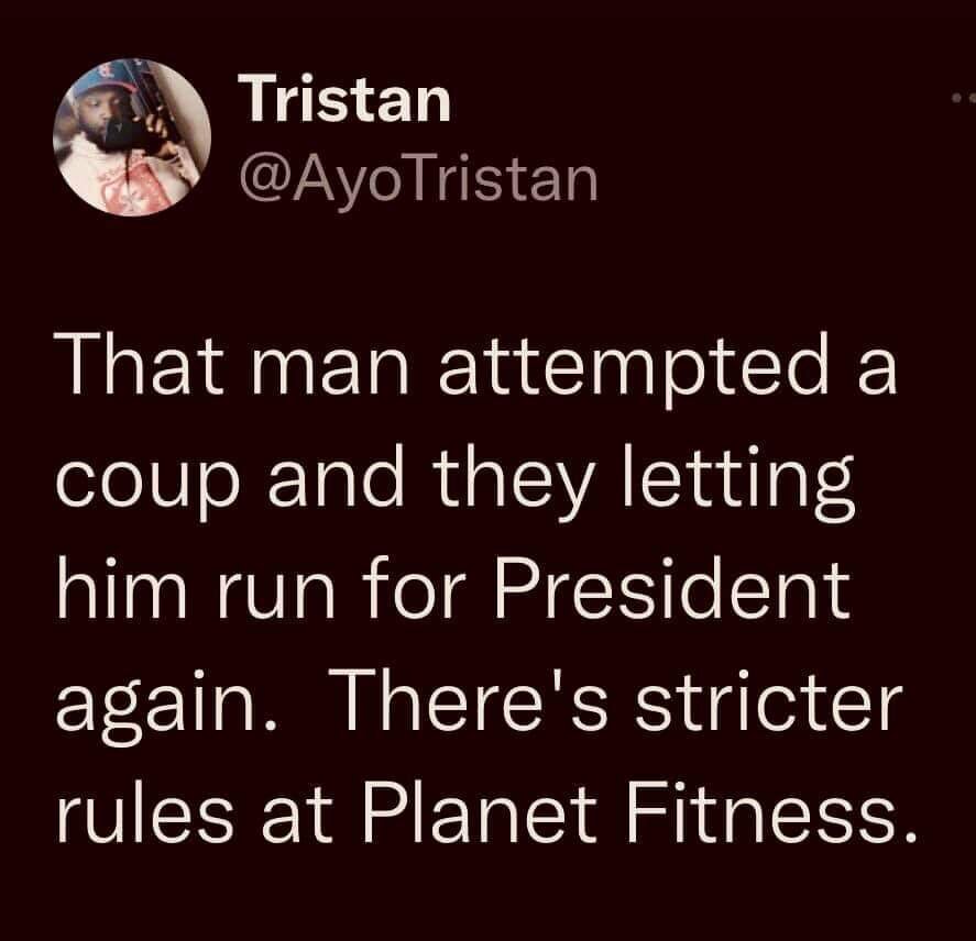 November 16, 20223 yr 29 minutes ago, Diehardfan said: We'll agree to disagree. I don't want him to run and hope he gets locked up so he can't run. You can once again focus on that or continue to focus on the other which we aren't going to agree on. Oh man this is awesome. "I think he's a criminal and I hope he goes to prison. But I'd still vote for him" It's a cult.............