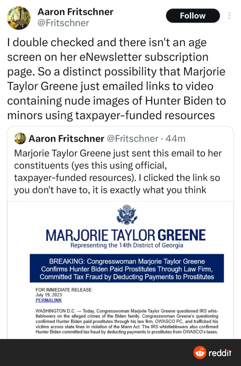 July 20, 20232 yr 1 hour ago, Tweek said: Time to charge her for revenge porn since she's now DISTRIBUTING said video of her showing the pics via email @Mike31mt "conservatives" lmao