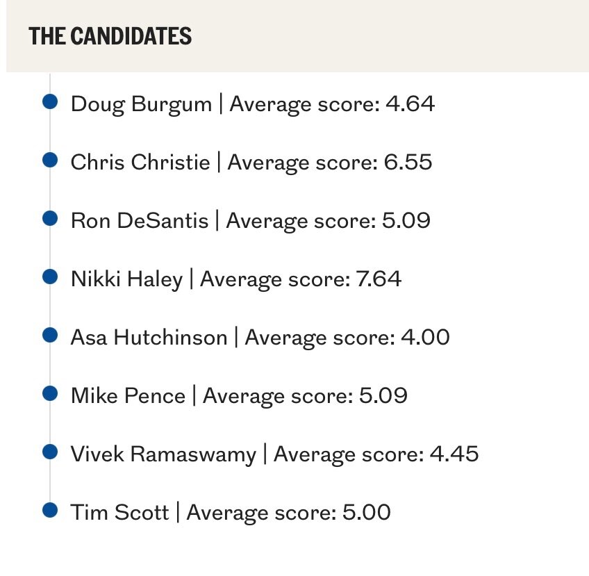 August 24, 20232 yr 1 minute ago, Talkingbirds said: From the Inquirer. https://www.inquirer.com/opinion/inq2/republican-debate-presidential-who-won-gop-desantis-pence-20230823.html Yeah, I think the only real movement based on the debate may be Haley gaining a few points at Tim Scott's expense. Haley did a pretty good job and Scott didn't make a mark at all. And they share basically the same space. Also, you might see Vivek gain and pluck from DeSantis. Vivek was absolutely awful but most Republican primary voters are equally awful.