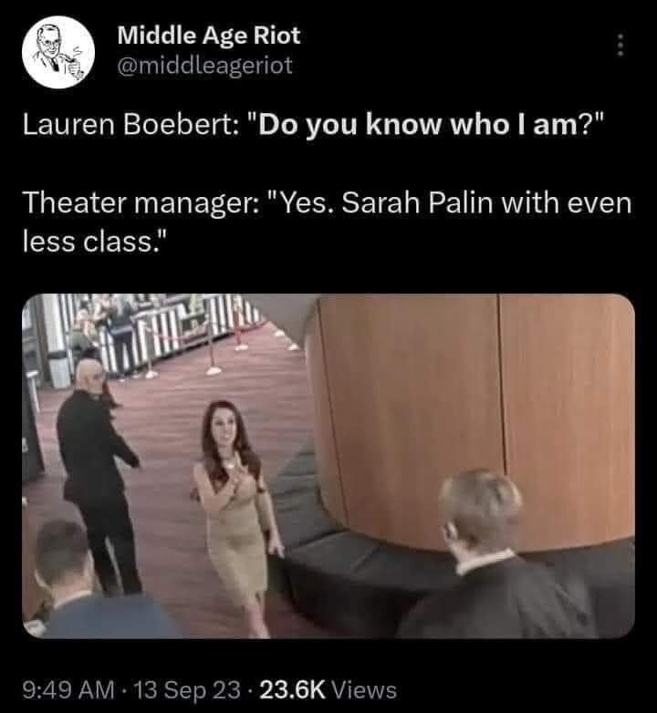 September 17, 20232 yr 3 hours ago, Talkingbirds said: Lauren Boebert's lover Quinn Gallagher who she fondled in theater owns gay-friendly bar that hosted DRAG shows The Hooch Craft Cocktail Bar in Aspen, co-owned by Quinn Gallagher, staged 'a winter Wonderland Burlesque & Drag Show,' Boebert has been an outspoken critic of drag, claiming it offends her Christian beliefs The new couple courted controversy for heavy-petting at Beetlejuice musical on Sunday night https://www.dailymail.co.uk/news/article-12527161/Lauren-Boeberts-Democrat-lover-drag-bar.html So this means they are groomers, right?