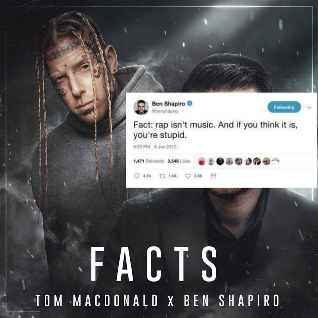 February 1, 20241 yr On 1/26/2024 at 2:38 PM, we_gotta_believe said: Watch out libtards, Shapiro out here spittin hot fire https://www.washingtonpost.com/entertainment/music/2024/01/31/ben-shapiro-song-tom-macdonald/ Quote Ben Shapiro, a right-wing political commentator known for his incendiary takes, just made his rap debut with a spitfire song called "Facts.” It soared to the No. 1 spot on the iTunes Store, sitting above recent pop and hip-hop hits from the likes of Megan Thee Stallion, Justin Timberlake and Jack Harlow.