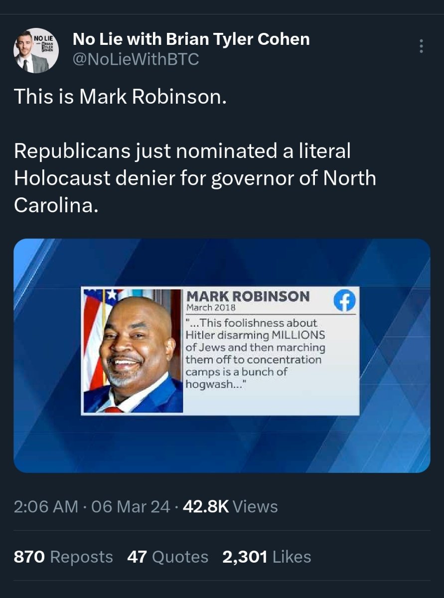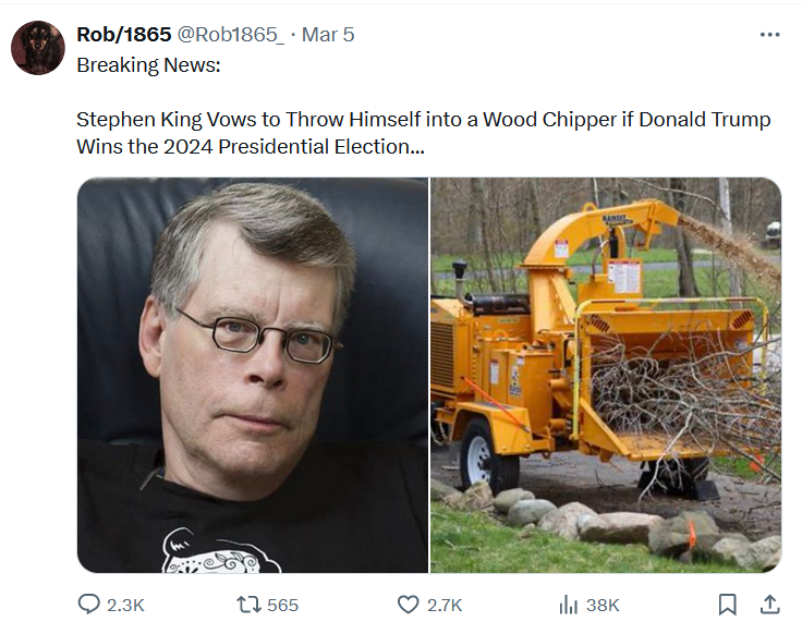 March 6, 20241 yr WTF is with the right? I've seen a bunch of these, any public figure, or Democrat in office who speaks against Trump now has a meme where somebody makes up BS about people killing themselves if Trump is elected, while a bunch of their sicko friends cream in their jeans over the idea.