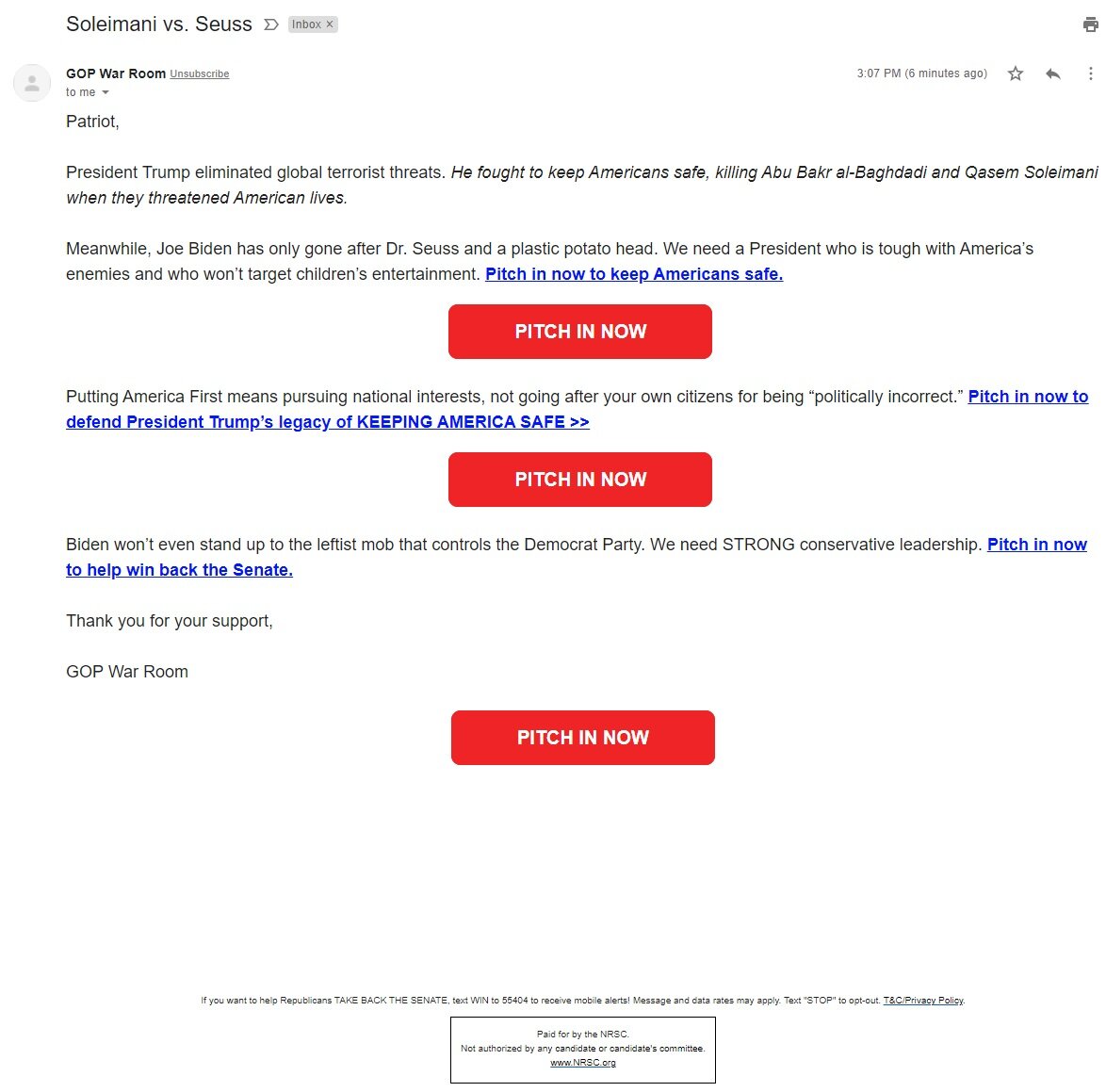 March 10, 20214 yr The GOP will save you from what Biden has done to Dr. Suess, if only you send them money.