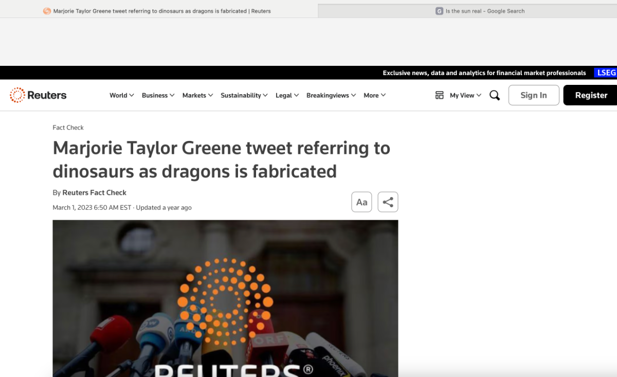 June 5, 20241 yr 46 minutes ago, Toastrel said: TIRED OF LEFTIST MISINFOMATION https://www.reuters.com/article/idUSL1N3590Z4/