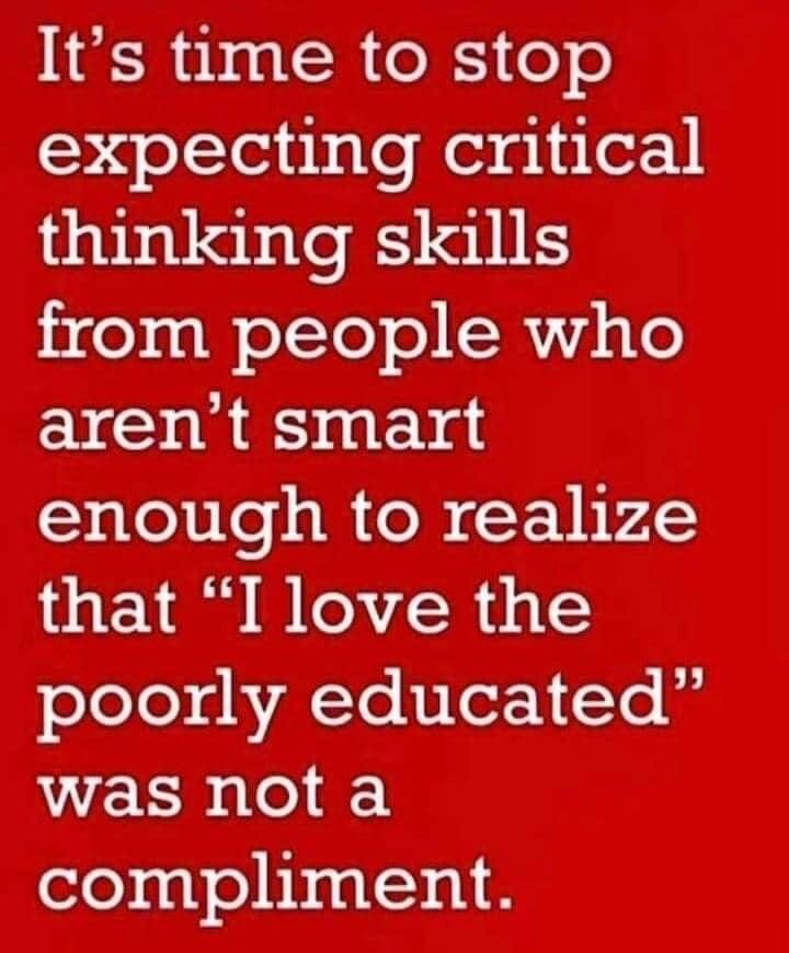 June 13, 20241 yr 3 hours ago, mr_hunt said: Florida schools are awful. But conservatives don't need to go to Columbia or Harvard for any of that librul learnin. It is easier to choose a safe space at a school in Floriduh. Where it isn't so cutting edge and competitive.